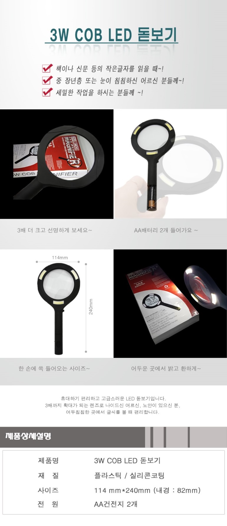 ±¸¼º LED µ¸º¸±â + Á¦Ç° Á¾ÀÌ ÄÉÀ̽º Á¦Ç°±Ô°Ý 114x240mm (³»°æ 82mm)