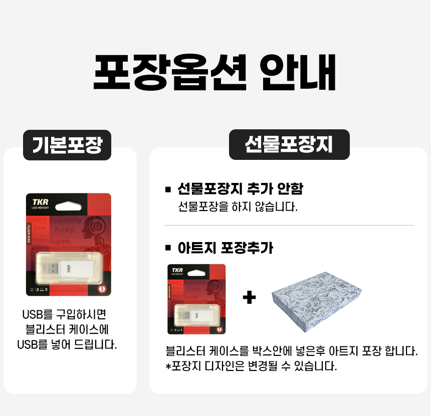 - ÆÐŰÁö, ¼±¹° »óÀÚ µî ¿É¼ÇÀ» Ãß°¡ÇÏ¿© ¹è¼Û ÈÄ ¹ÝǰµÈ »óǰÀÇ ¼±¹°»óÀÚ°¡ ÈѼյǾú°Å³ª µ¿ºÀÇÏÁö ¾ÊÀº °æ¿ì, ÇØ´ç ºñ¿ë °øÁ¦ ÈÄ È¯±ÞµÉ ¼ö ÀÖ½À´Ï´Ù.