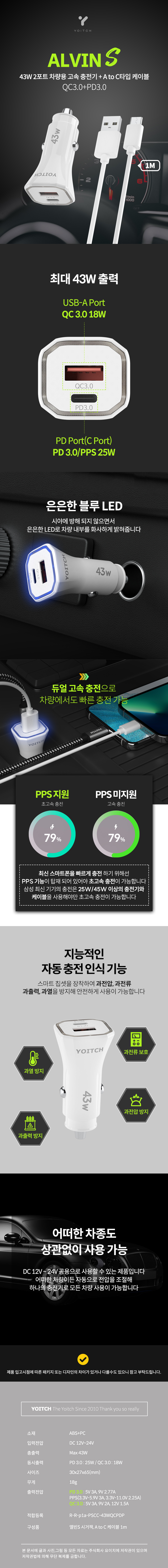 [¿äÀÌÄ¡] ¾ÙºóS LED Ãʰí¼Ó Â÷·®¿ë ÃæÀü ½Ã°ÅÀè 43W PPS USB PD ŸÀÔ