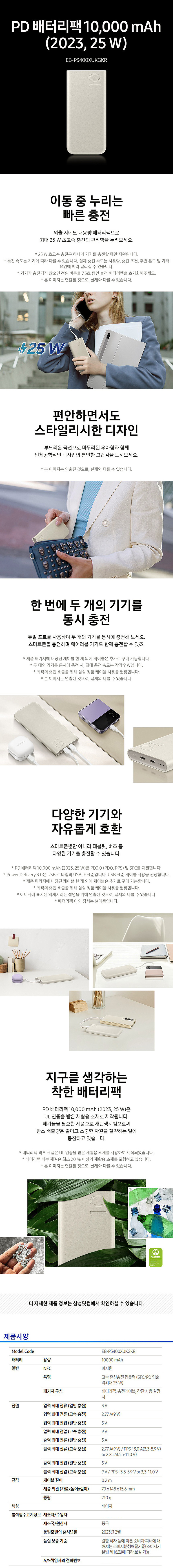 »ï¼º ¸ÅÁ÷ 25W PD Ãʰí¼Ó ÃæÀü º¸Á¶¹èÅ͸® 10000mAh EB-P3400